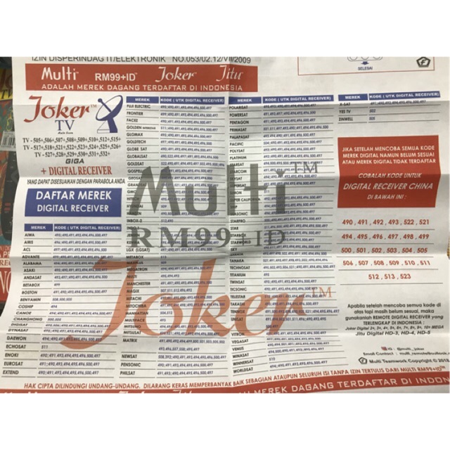 Daftar kode remot joker digital receiver untuk semua merek receiver parabola seperti indovision, astro, advante dan lainnya serta cara .